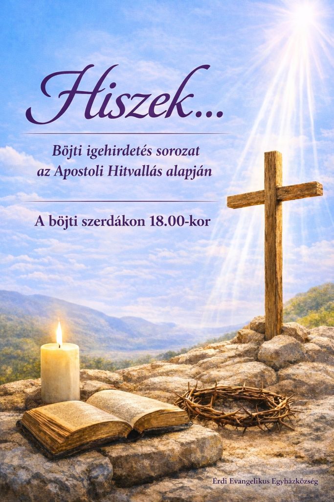 Szeretettel várunk mindenkit a böjti igehirdetés sorozatunkon, melynek témája az Apostoli Hitvallás. Az alkalmakat szerdánként 18.00-tól tartjuk személyes jelenléttel a gyülekezeti teremben.